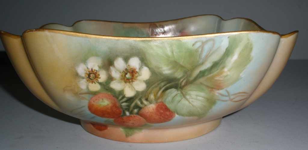 Square Porcelain Bowl w/Hand Painted Strawberries. Square Porcelain Bowl w/Hand Painted Strawberries.