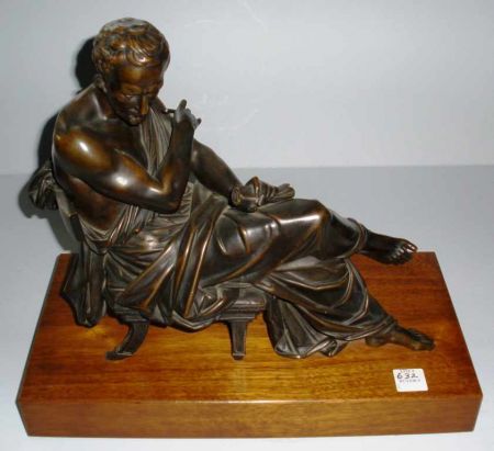 Solid Cast French Bronze (Roman Scribe) on Wooden Base. Solid Cast French Bronze (Roman Scribe) on Wooden Base.