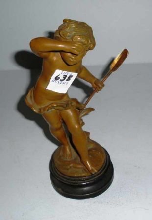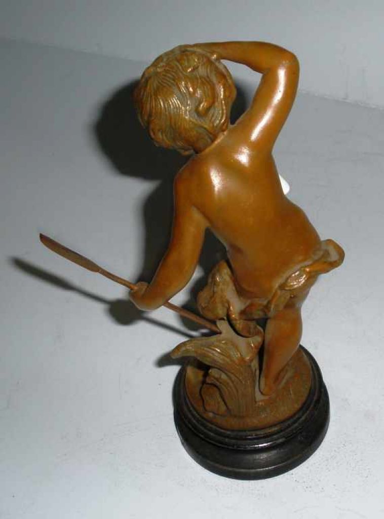 Small Bronze Figure of Nude Young Boy on Black Marble Base. Small Bronze Figure of Nude Young Boy on Black Marble Base.
