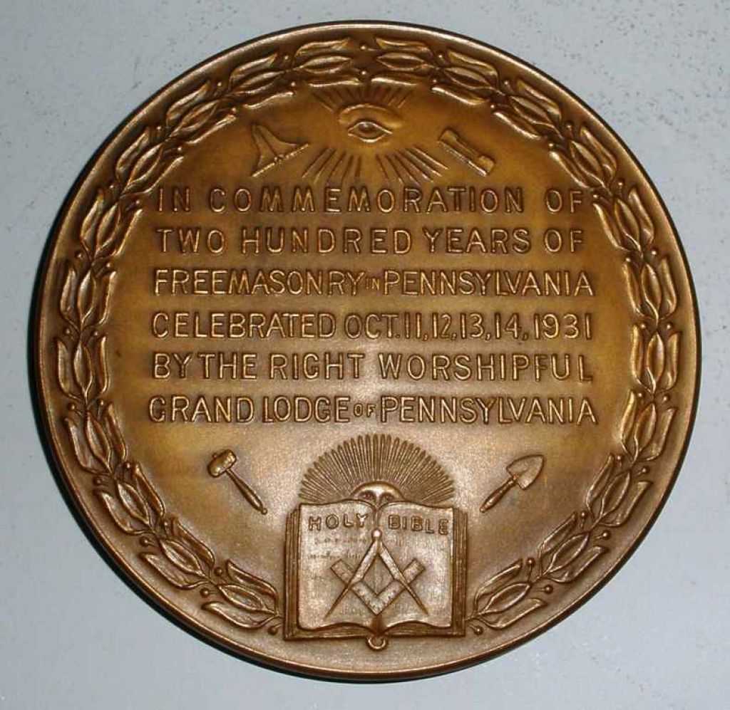 Masonic Bronze Commemorative Coin 1931 - 3" diameter Masonic Bronze Commemorative Coin 1931 - 3" diameter