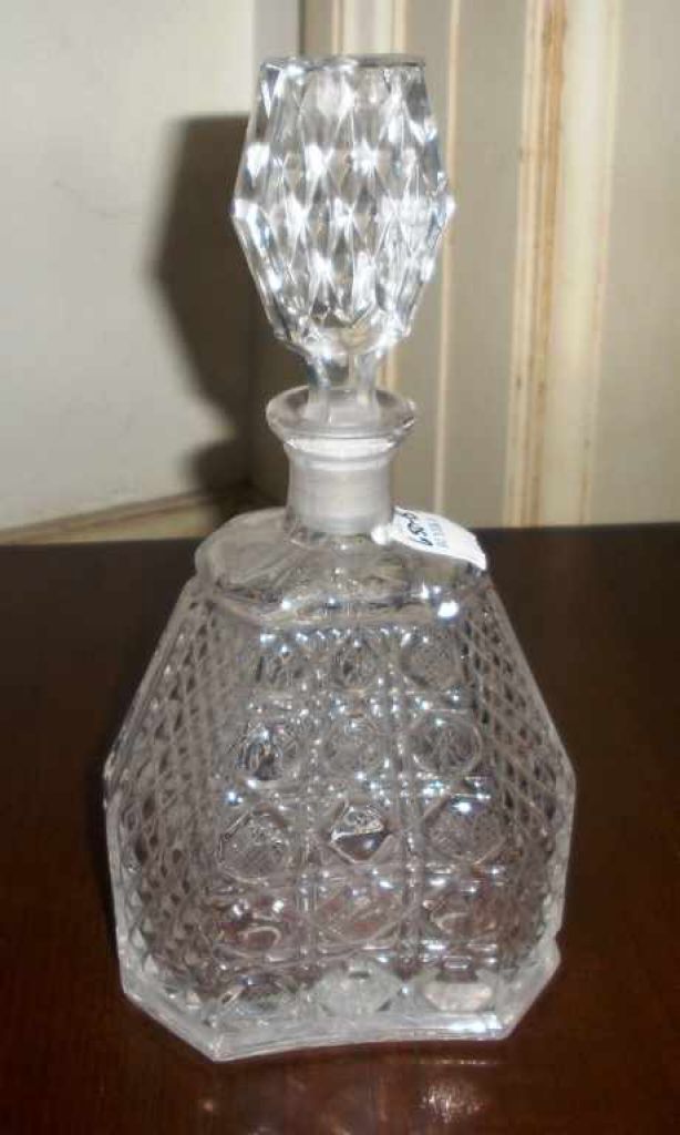 Pressed Glass Decanter w/Cross Hatch Highlighting - 9 1/2" tall Pressed Glass Decanter w/Cross Hatch Highlighting - 9 1/2" tall