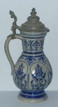 3607 German Cobalt/Grey Stoneware Stein w/Pewter cover