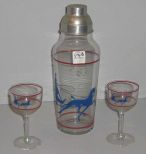 3 Piece Cocktail Shaker Set w/Two Stems, Horse Enameled - 11" tall 3 Piece Cocktail Shaker Set w/Two Stems, Horse Enameled - 11" tall