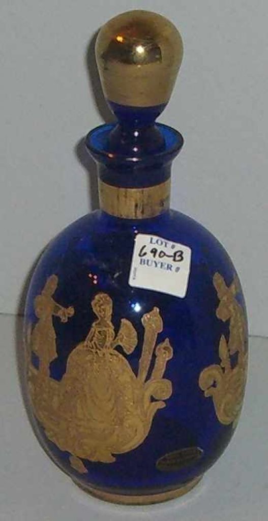 Venetian Cobalt Glass Decanter Engraved 18k Gold Decoration - 9" tall Venetian Cobalt Glass Decanter Engraved 18k Gold Decoration - 9" tall