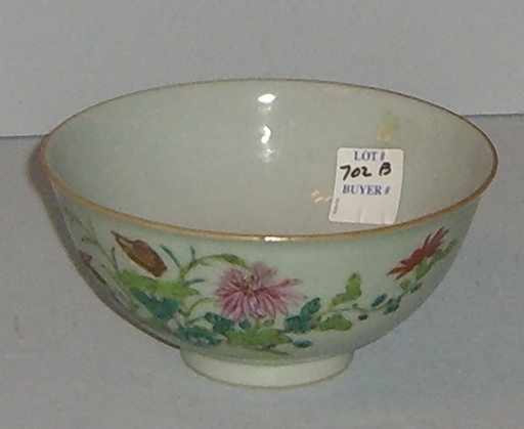 Small Oriental Flared Rim Bowl w/Floral and Bats Enamel Decoration - 5 3/4" diameter Small Oriental Flared Rim Bowl w/Floral and Bats Enamel Decoration - 5 3/4" diameter