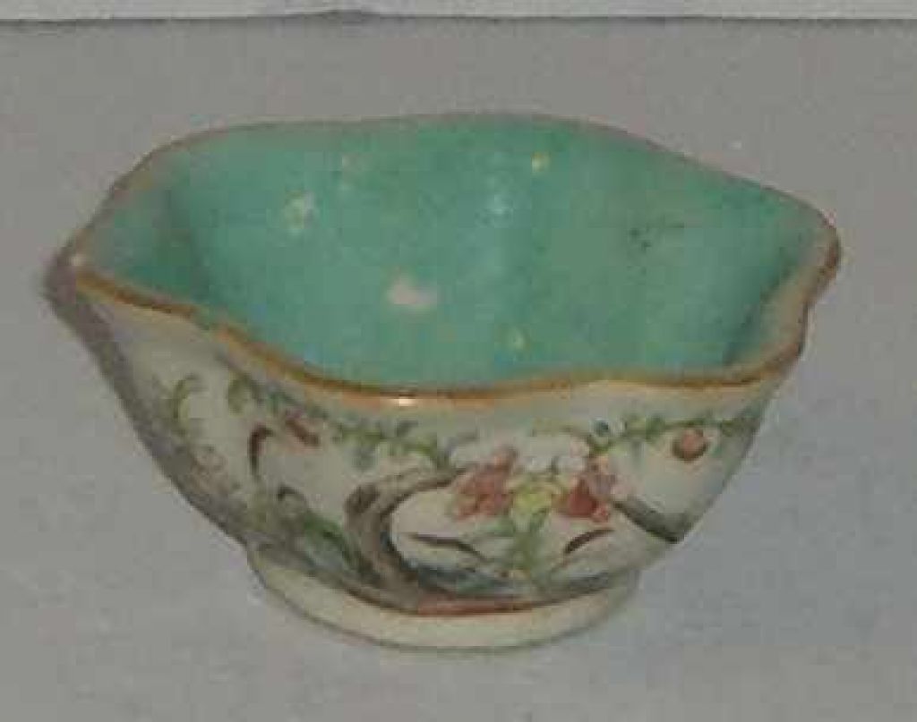 Small Early Chinese Scalloped Edge Bowl w/Hand Painted Bird and Floral - 1 1/2" tall Small Early Chinese Scalloped Edge Bowl w/Hand Painted Bird and Floral - 1 1/2" tall