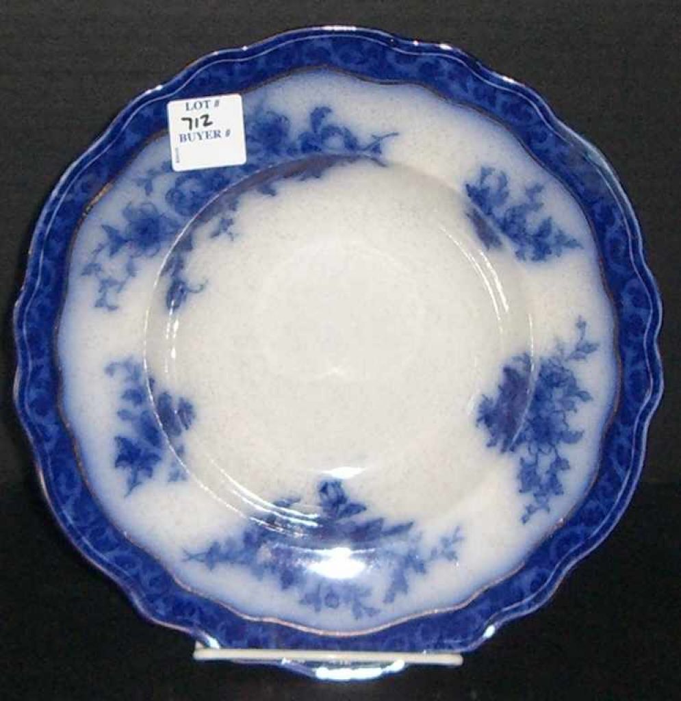 Flow Blue w/Gold Cream Soup Bowl Touraine Pattern - 9" diameter. Flow Blue w/Gold Cream Soup Bowl Touraine Pattern - 9" diameter.