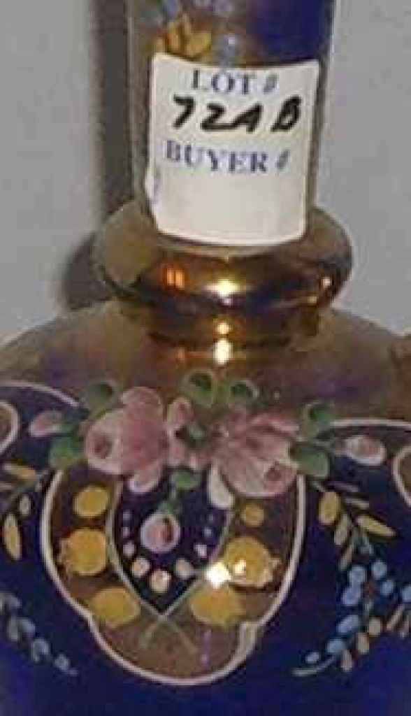 Czech Blue Glass Small Ewer w/Gilt and Floral Enamel Decoration - 10 1/4" tall Czech Blue Glass Small Ewer w/Gilt and Floral Enamel Decoration - 10 1/4" tall