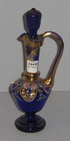 3693 Czech Blue Glass Small Ewer w/Gilt