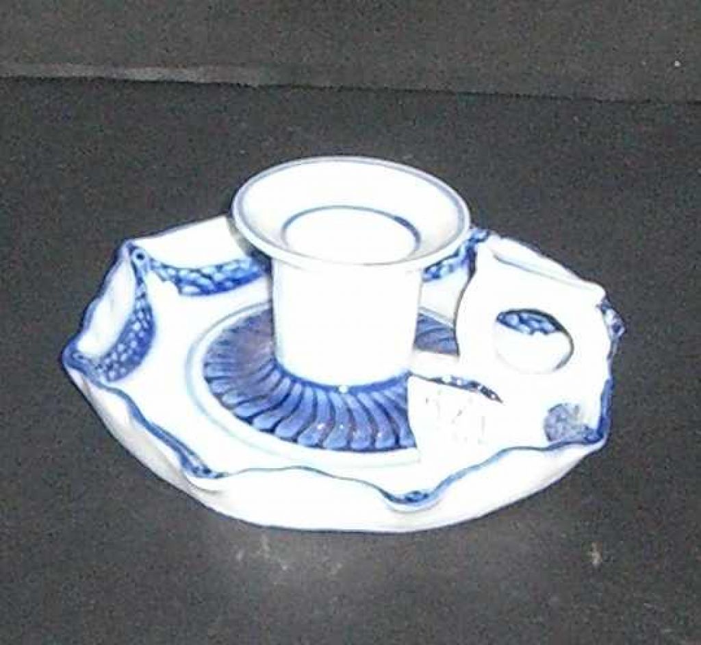 Flow Blue Chamber Stick Festoons Upturned Rim Flow Blue Chamber Stick Festoons Upturned Rim