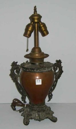 Bradley and Hubbard Oil Lamp Converted to Electric - Very Ornate Base and Handles. Bradley and Hubbard Oil Lamp Converted to Electric - Very Ornate Base and Handles.