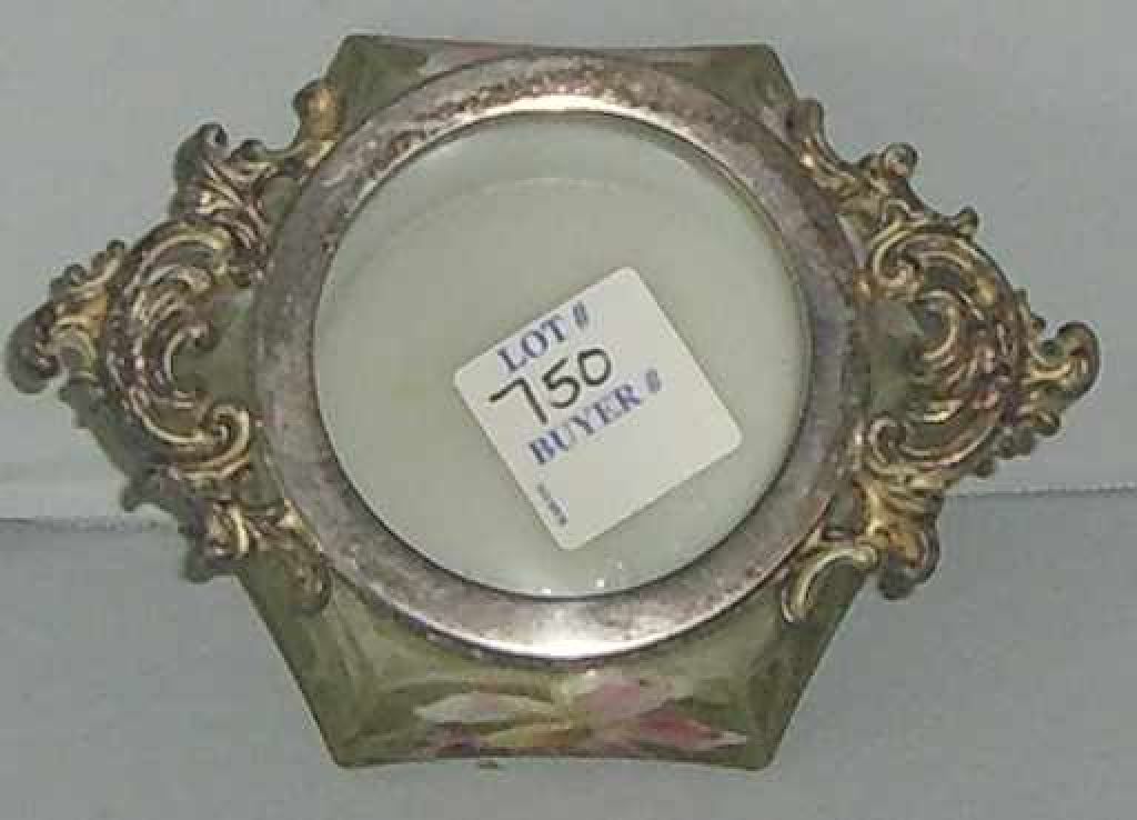 Kelva glassware pin box w/silver plated mount. Kelva glassware pin box w/silver plated mount.