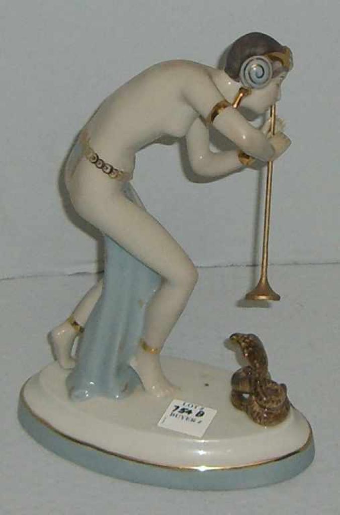 Royal Dux Snake Charmer, White w/Blue and Gold Gilt Decoration - 6" tall x 6 3/4" wide Royal Dux Snake Charmer, White w/Blue and Gold Gilt Decoration - 6" tall x 6 3/4" wide
