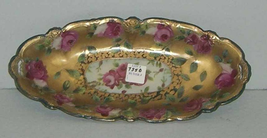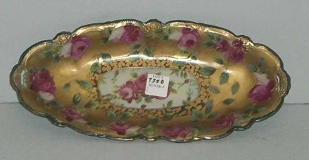 Nippon Hand Painted Celery Dish, Gold Gilt w/Hand Painted Roses - 12 3/4" long x 5 3/4" wide Nippon Hand Painted Celery Dish, Gold Gilt w/Hand Painted Roses - 12 3/4" long x 5 3/4" wide