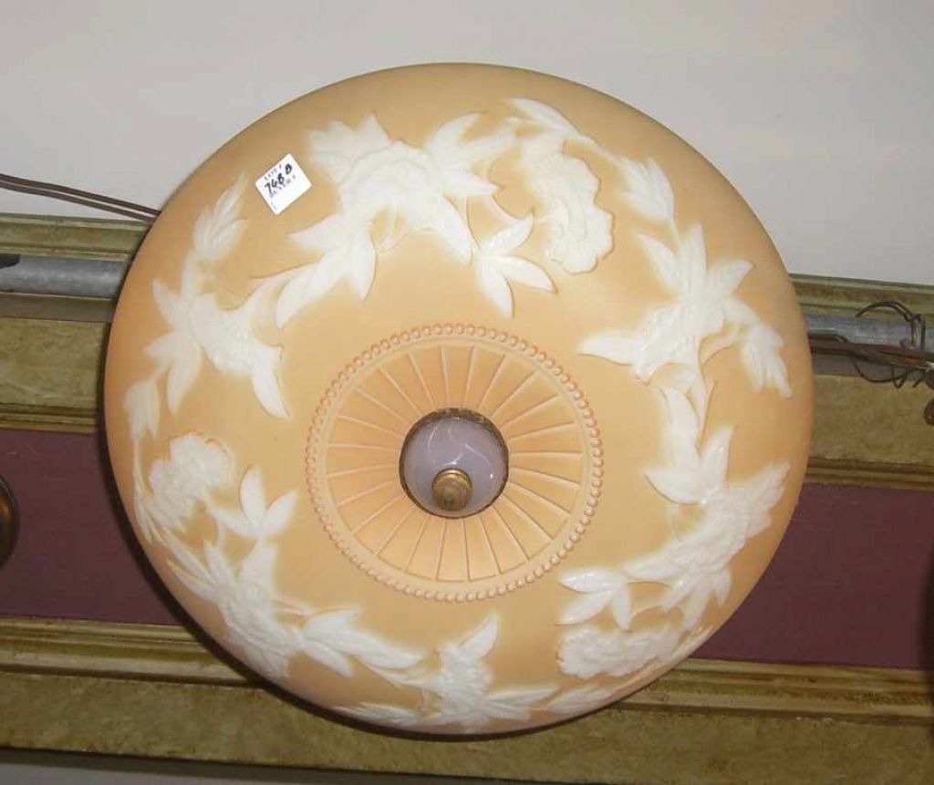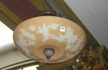 Moe Bridges/Phoenix Ceiling Mount Light Fixture, Pink Background w/White Floral Decoration - approx. 18" diameter Moe Bridges/Phoenix Ceiling Mount Light Fixture, Pink Background w/White Floral Decoration - approx. 18" diameter