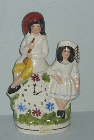 3779 Reproduction Staffordshire Figural Boy and Girl w/Clock