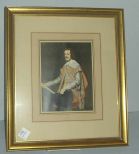 Print of court gentlemen in gold gilt frame. Print of court gentlemen in gold gilt frame.