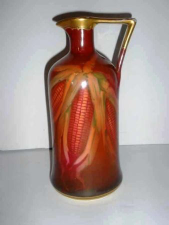 Hand painted Pickard jug w/corn motif on Austrian blank. Hand painted Pickard jug w/corn motif on Austrian blank.