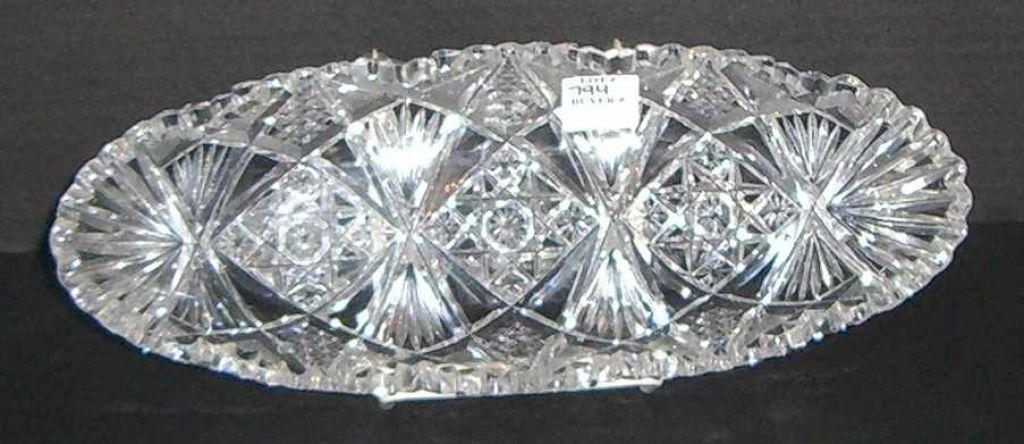 Cut glass celery tray - 12" long - singed T. B. Clark. Cut glass celery tray - 12" long - singed T. B. Clark.
