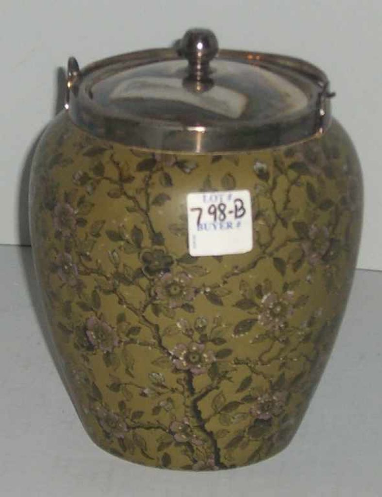 Doulton Marked Biscuit Jar, Silverplate Fittings, Dated Jan. 4, 1848 - 7 1/2" tall Doulton Marked Biscuit Jar, Silverplate Fittings, Dated Jan. 4, 1848 - 7 1/2" tall