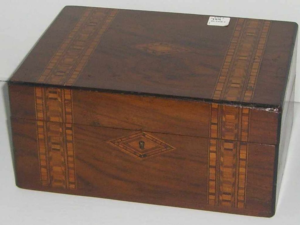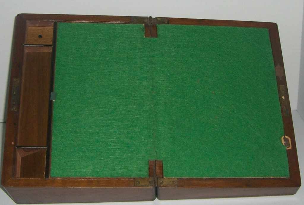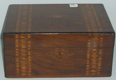 Burl Veneered Lap Desk w/Multi Inlaid Bands. Burl Veneered Lap Desk w/Multi Inlaid Bands.