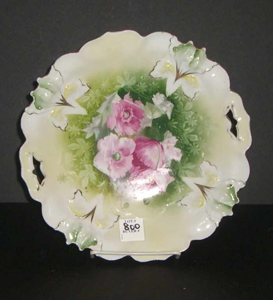 RS Prussia double handle plate, with flowers - 9 1/2" round RS Prussia double handle plate, with flowers - 9 1/2" round