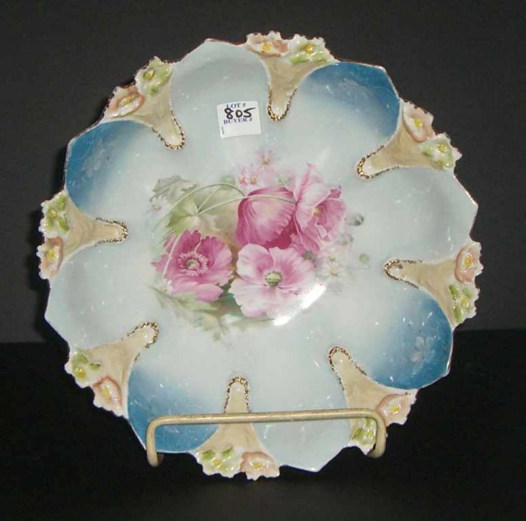 RS Prussia hand painted bowl with pink flowers - 10" round by 3" RS Prussia hand painted bowl with pink flowers - 10" round by 3"