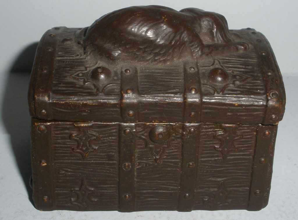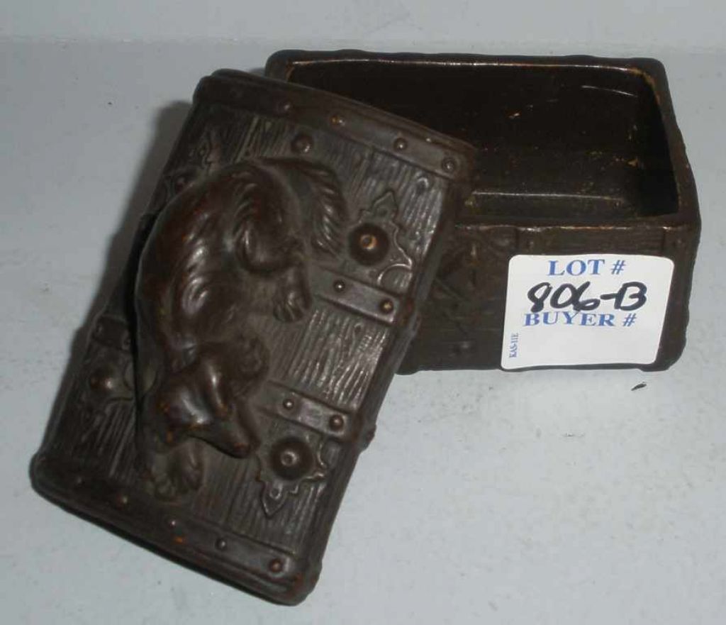 Schiller Terra Cotta Match Box w/Sleeping Dog on Lid - 1 2/3" width x 2 2/3" length x 2 1/2" height Schiller Terra Cotta Match Box w/Sleeping Dog on Lid - 1 2/3" width x 2 2/3" length x 2 1/2" height