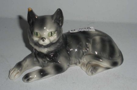 Ceramic German Large Gray Cat Lying Down - 2" width x 4 3/8" length x 2 1/2" height Ceramic German Large Gray Cat Lying Down - 2" width x 4 3/8" length x 2 1/2" height
