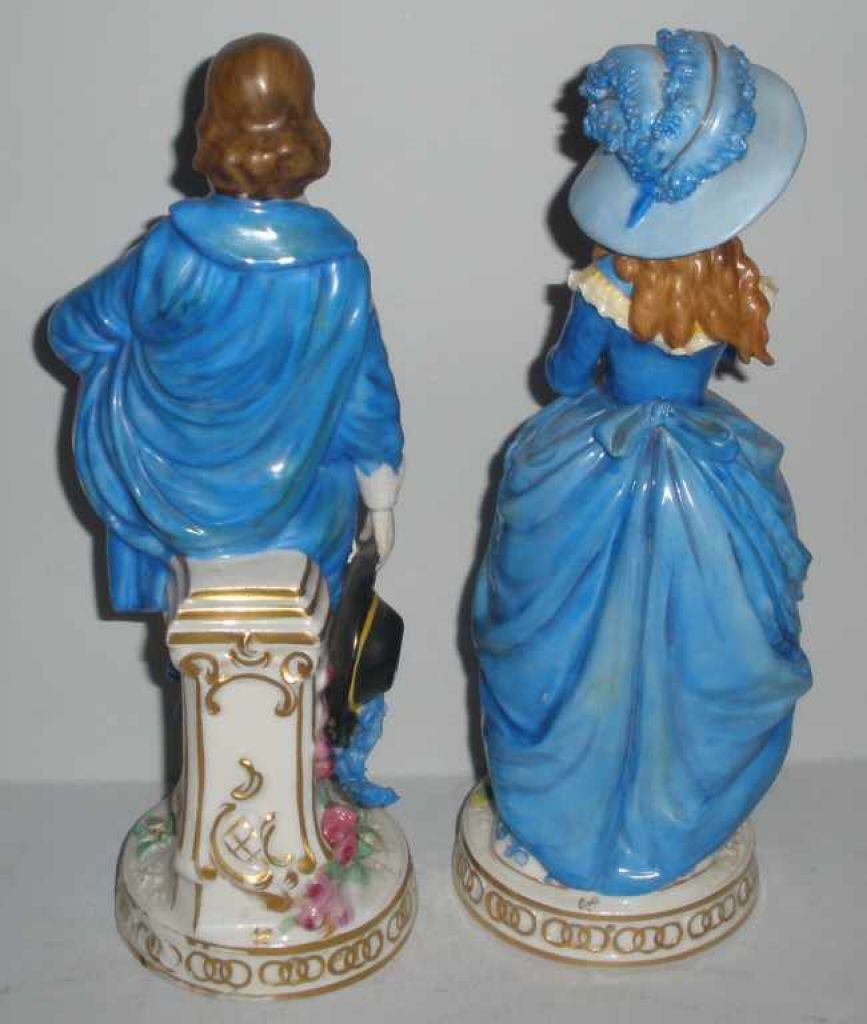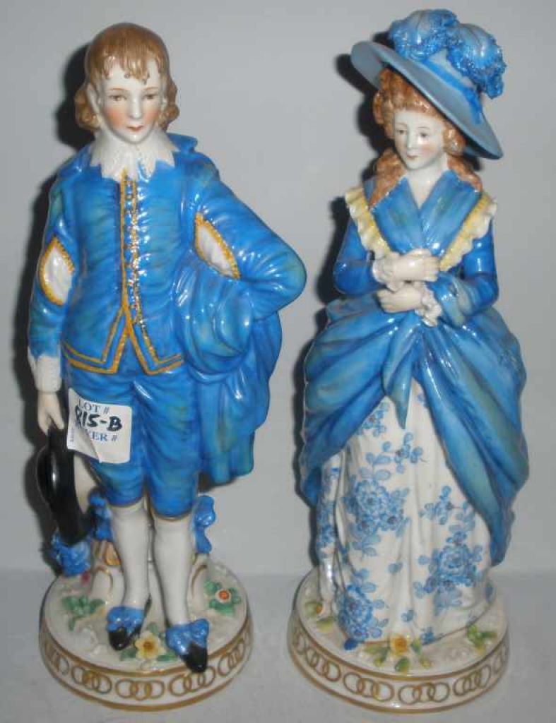 Pair German Light Blue Decorated Figurines, Man and Lady - 10" tall Pair German Light Blue Decorated Figurines, Man and Lady - 10" tall