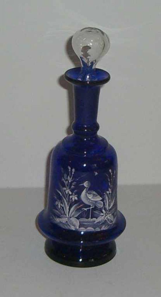 Cobalt blue enameled bird in water on bottle - 3" round by 9" tall Cobalt blue enameled bird in water on bottle - 3" round by 9" tall