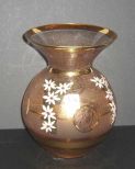 Peach & gold enameled jar with flowers - 6 1/2" round by 9 1/2" tall Peach & gold enameled jar with flowers - 6 1/2" round by 9 1/2" tall