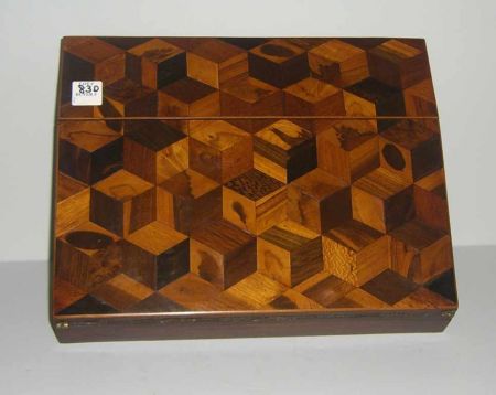 Tunbridge ware cube pattern writing slope or lap desk circa 1840 Tunbridge ware cube pattern writing slope or lap desk circa 1840