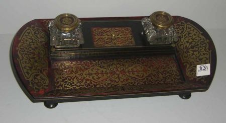 Boulle 2 bottle ink stand circa 1840 - 15" length by 8" width Boulle 2 bottle ink stand circa 1840 - 15" length by 8" width