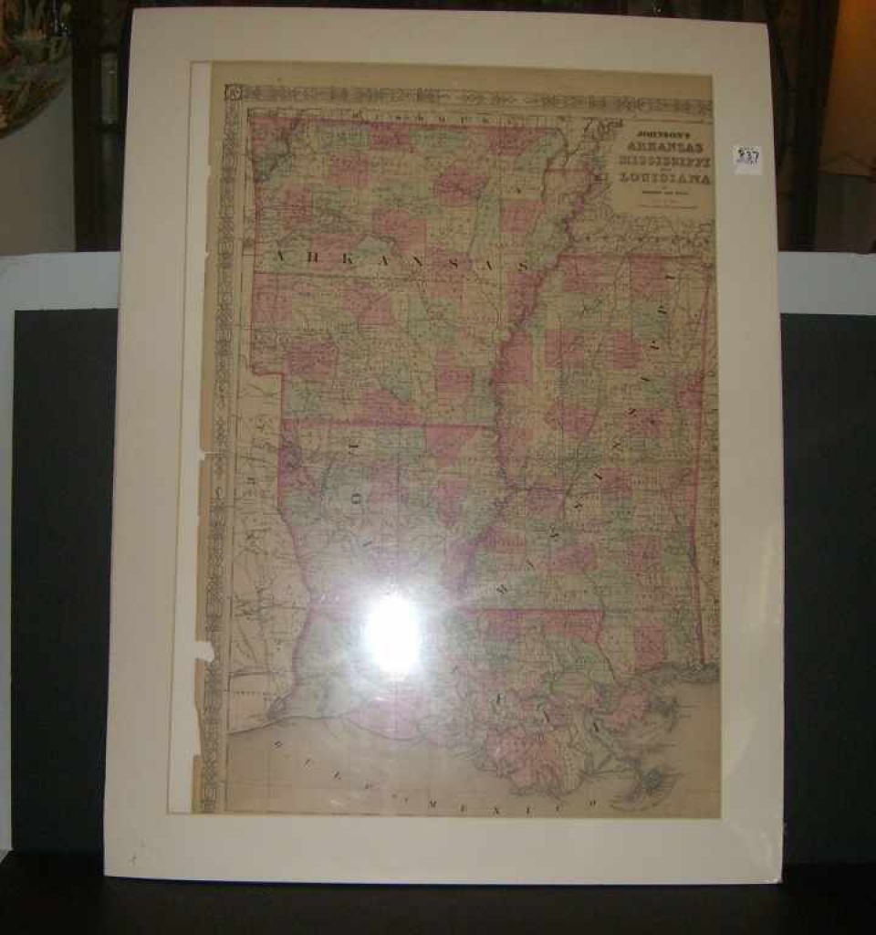 Matted map of Arkansas, Mississippi, & Louisiana by Johnson & Ward Matted map of Arkansas, Mississippi, & Louisiana by Johnson & Ward