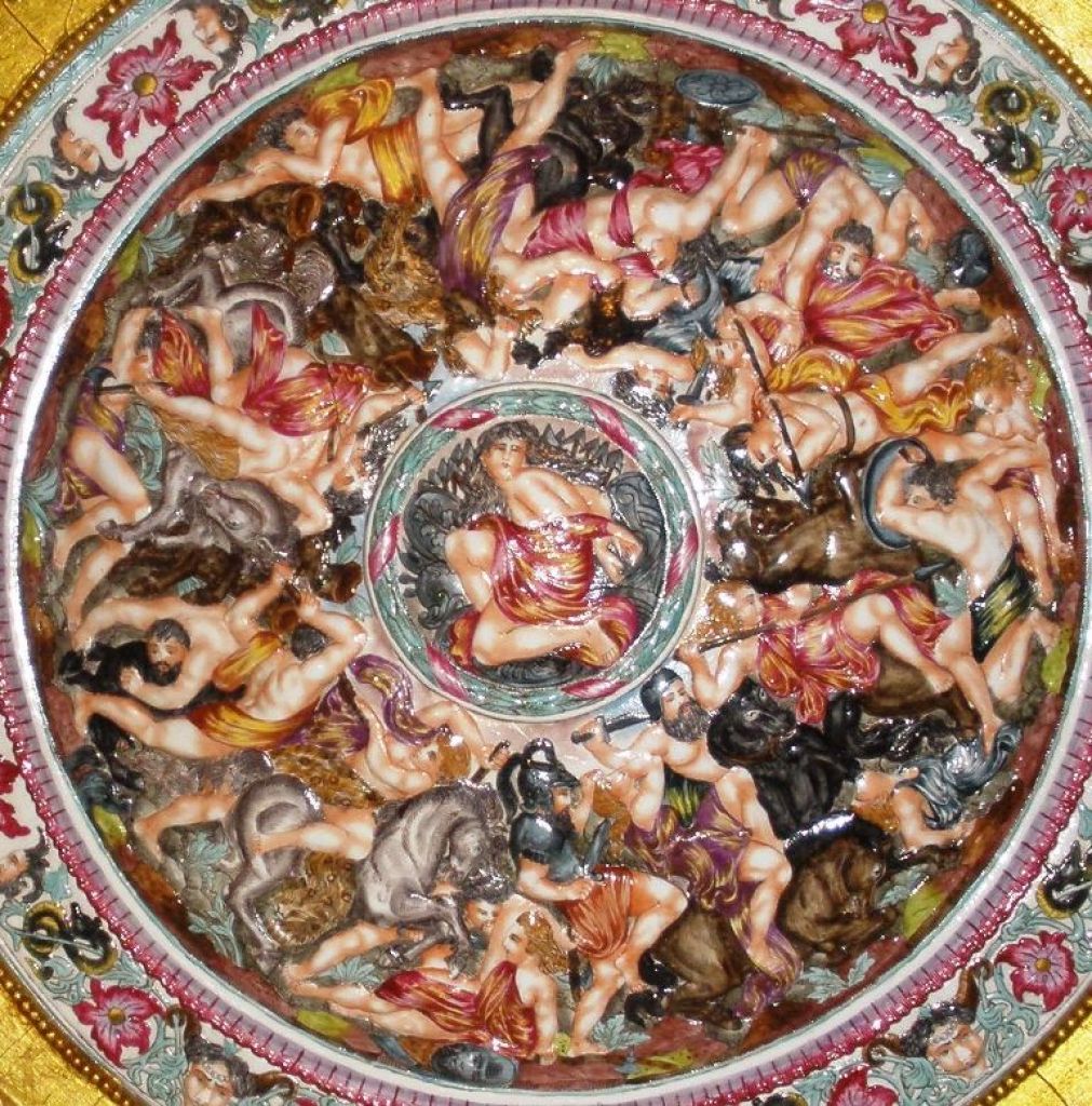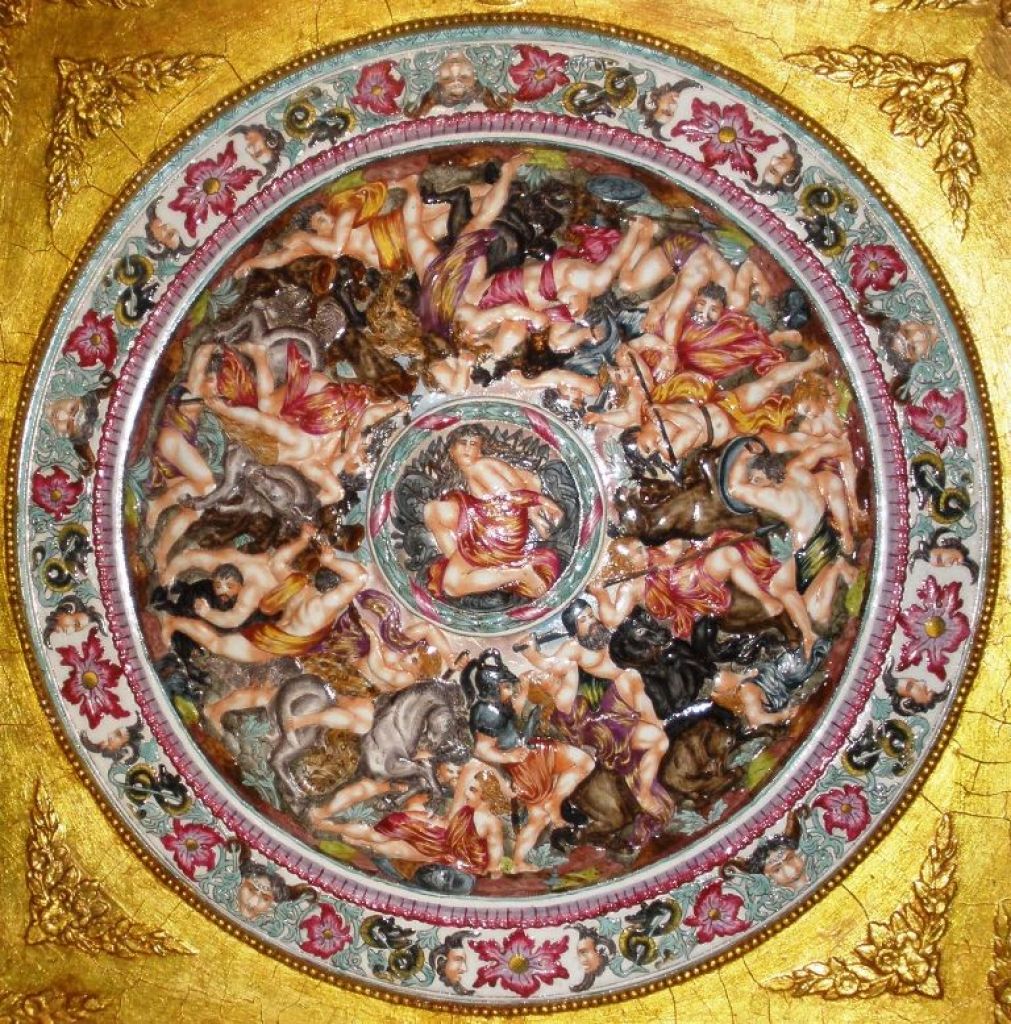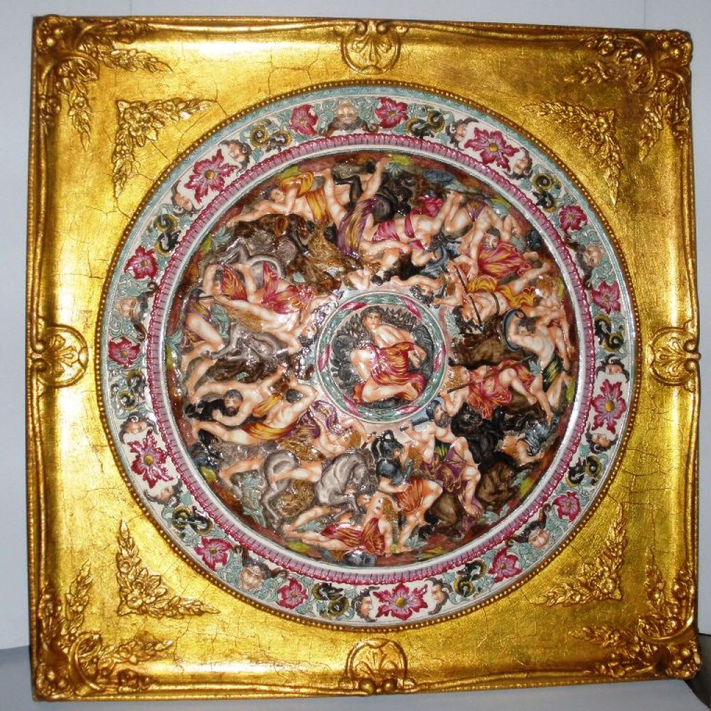Capo Di Monte charger with 18th century factory mark- Ginori, Italy mounted in gilt frame - frame is 29 3/4" square Capo Di Monte charger with 18th century factory mark- Ginori, Italy mounted in gilt frame - frame is 29 3/4" square