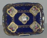 Nippon dresser tray cobalt with raised gold & mums d Nippon dresser tray cobalt with raised gold & mums d