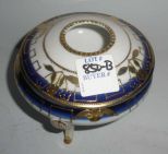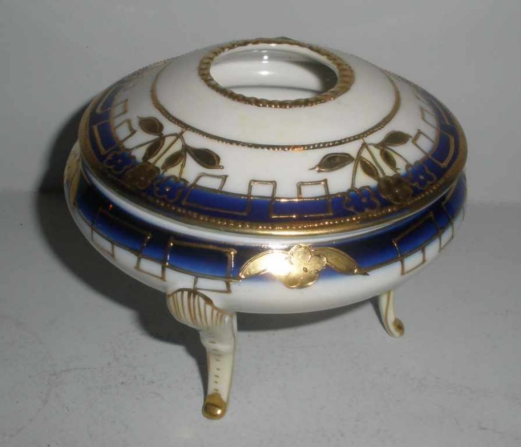 Nippon 3 footed covered hair receiver cobalt & white with gold gilt. Nippon 3 footed covered hair receiver cobalt & white with gold gilt.