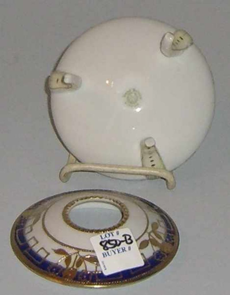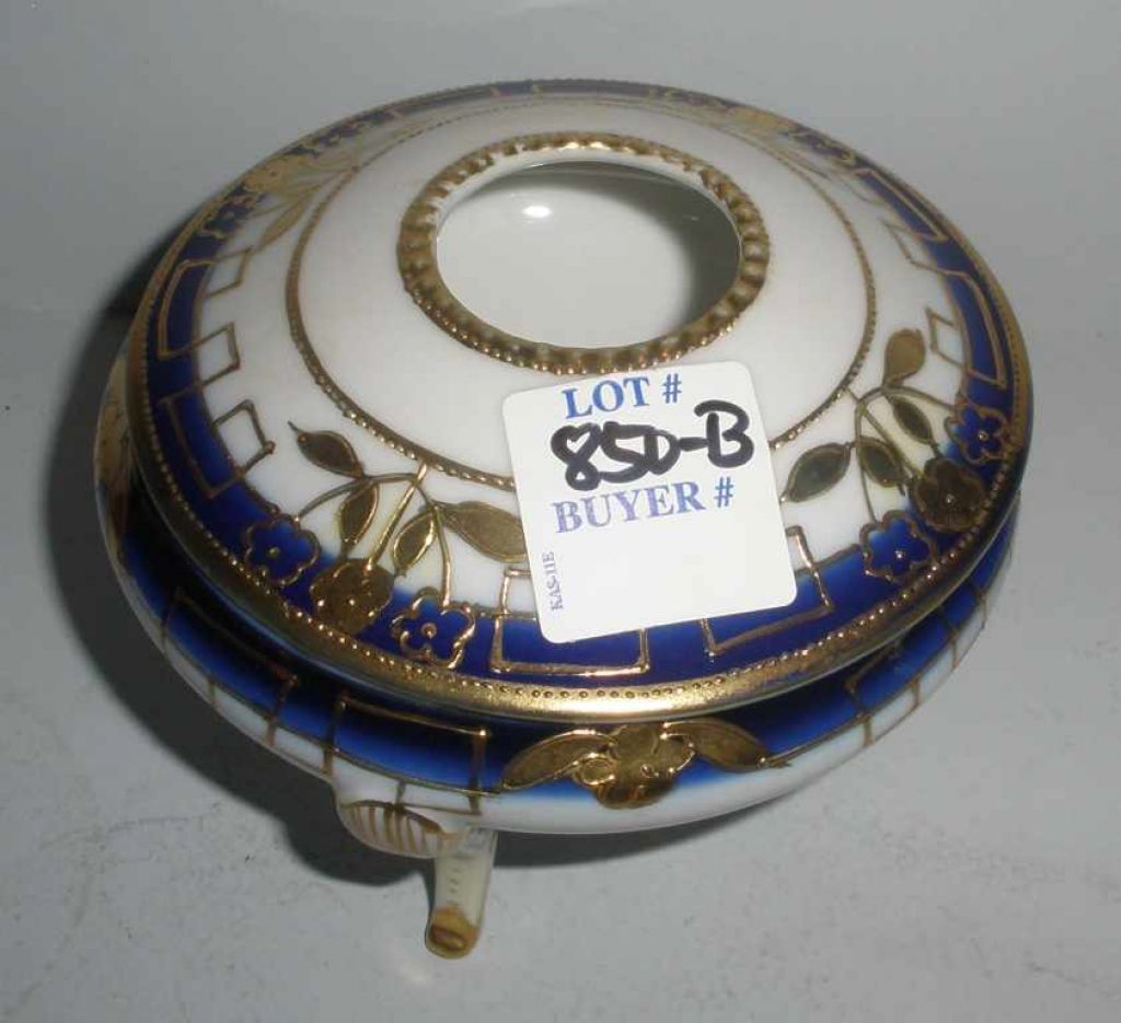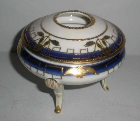3933 Nippon 3 footed covered hair receiver cobalt & white with gold gilt