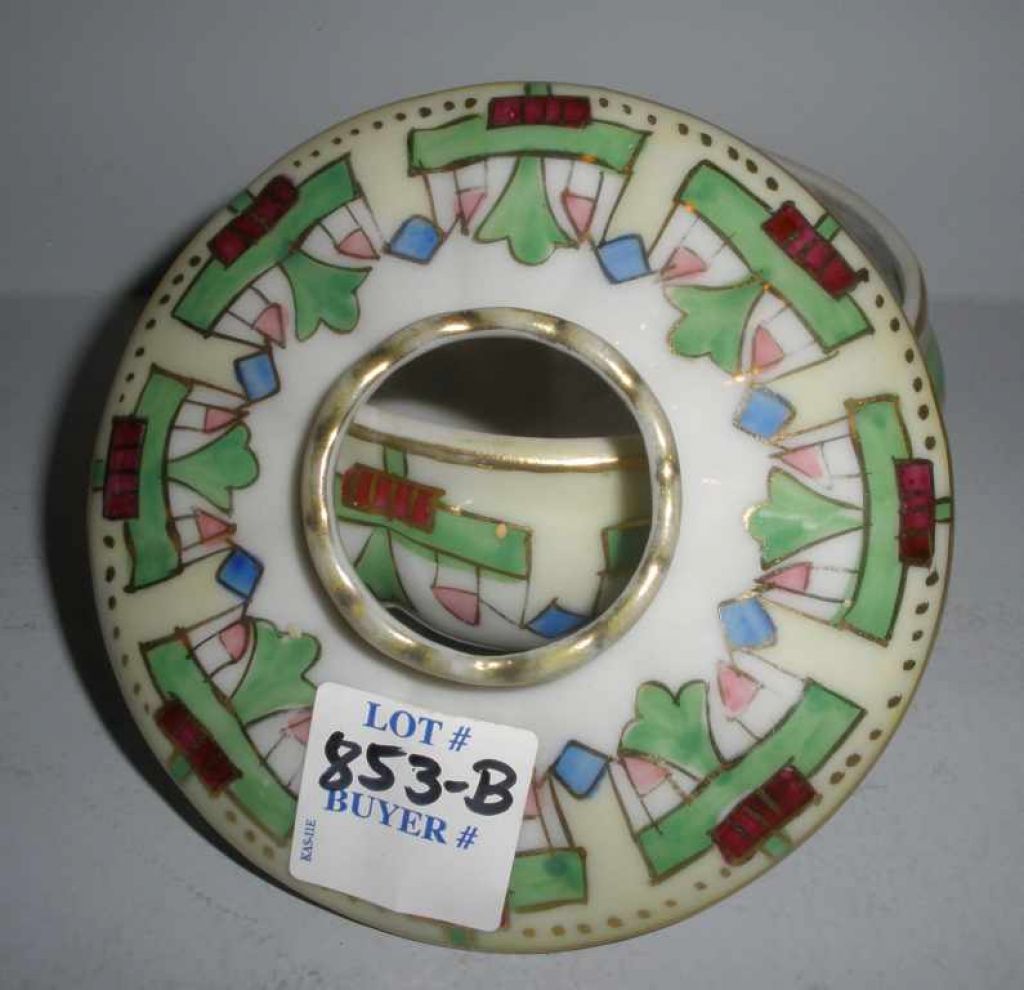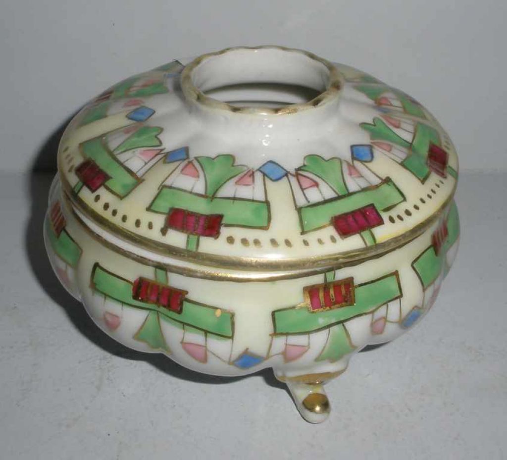 Nippon covered hair receiver footed. 4 1/2" diameter x 2 1/2" tall Nippon covered hair receiver footed. 4 1/2" diameter x 2 1/2" tall