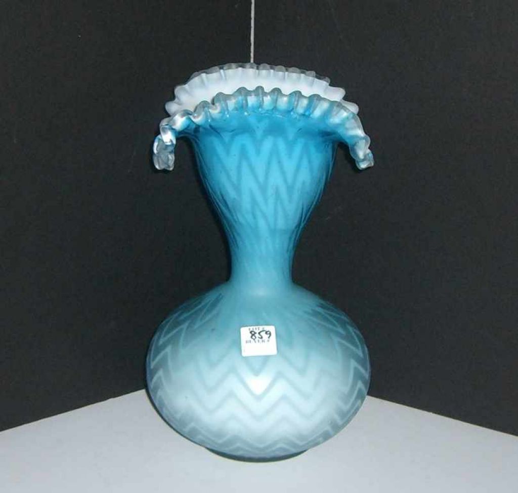 Mouth blown blue & white ruffled vase - 6 1/2" round by 12" tall Mouth blown blue & white ruffled vase - 6 1/2" round by 12" tall