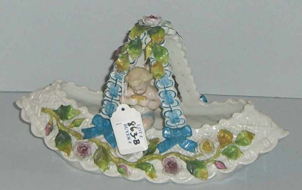 French Victorian figural basket with cherubs & applied floral d French Victorian figural basket with cherubs & applied floral d