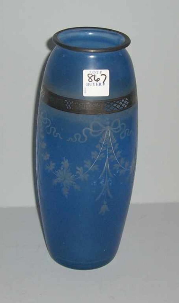 Blue frosted vase gold trim - 4" round by 10 1/2" tall Blue frosted vase gold trim - 4" round by 10 1/2" tall