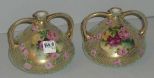 3969 Nippon pair of 4" tall double handle vases aqua beading gold & rose d