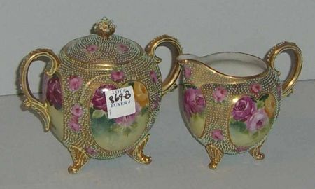 3971 Nippon Aqua Beaded Sugar and Creamer