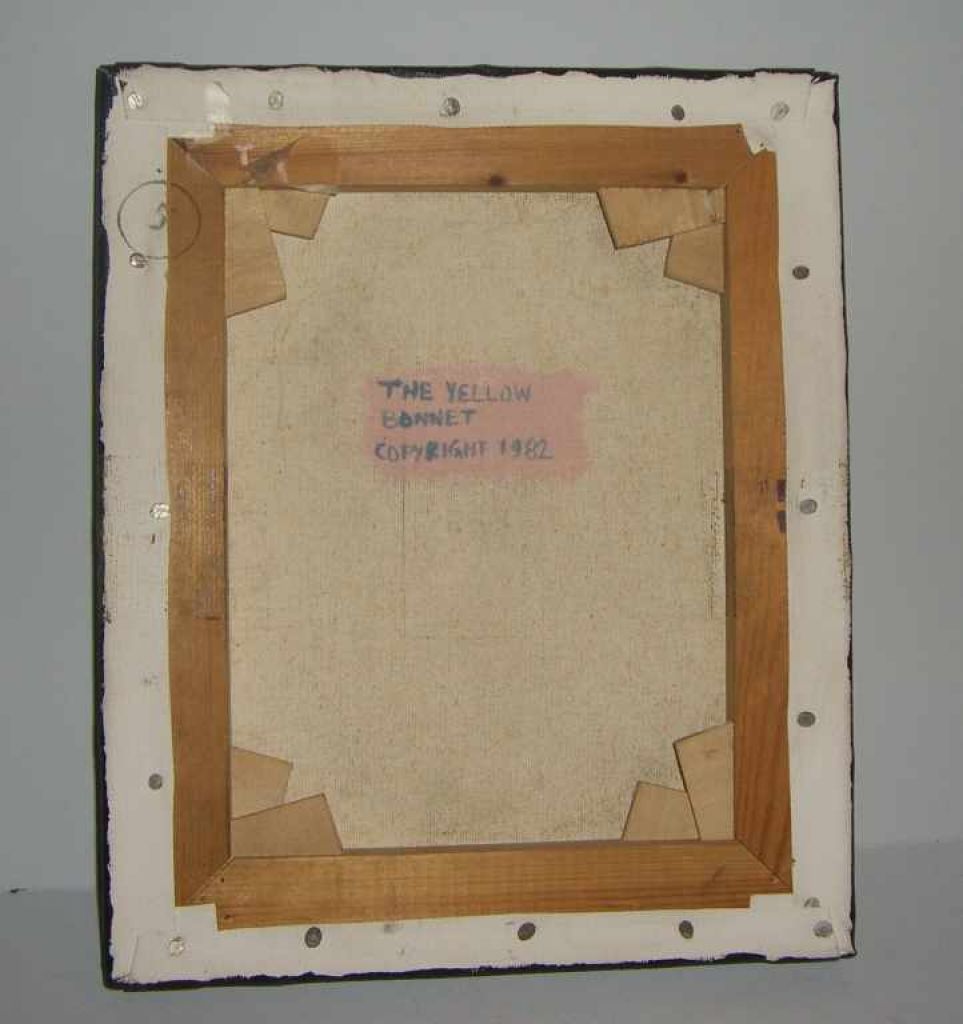 Painting on canvas by local artist Dewitt J. Lobrano "The Yellow Bonnet" 1982 Painting on canvas by local artist Dewitt J. Lobrano "The Yellow Bonnet" 1982