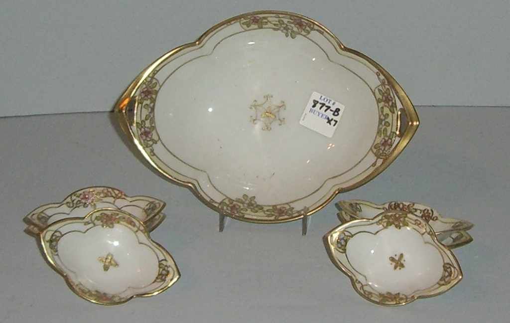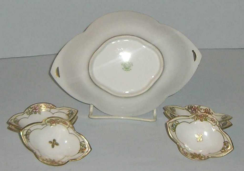 Nippon 7 pc nut set hand painted floral master & 6 small bowls. Nippon 7 pc nut set hand painted floral master & 6 small bowls.