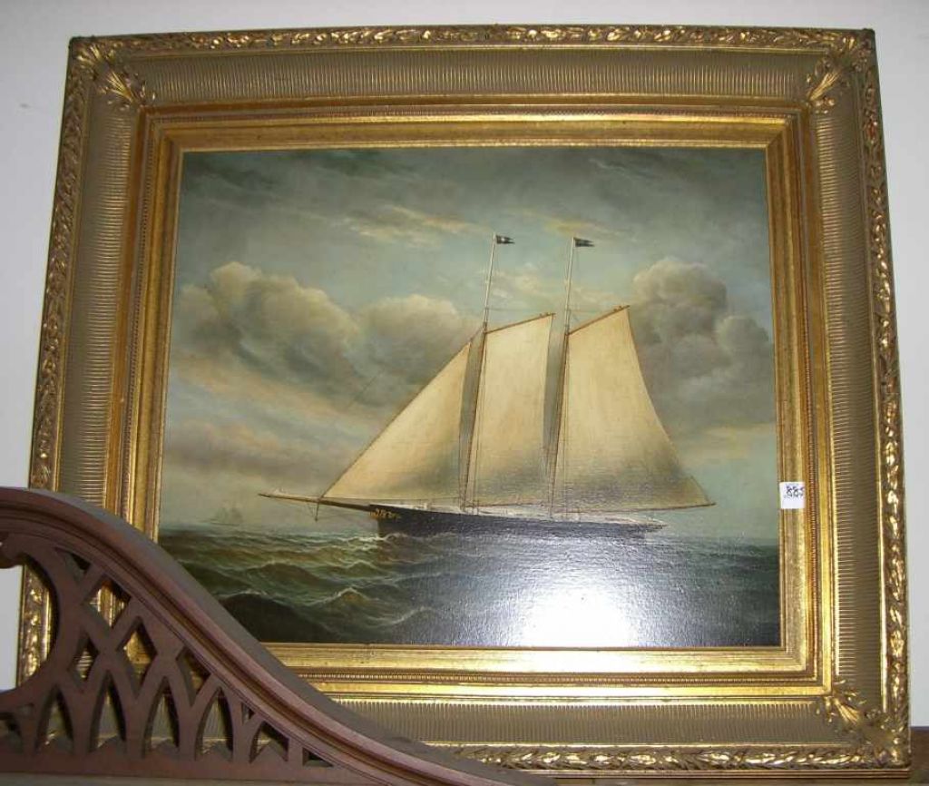 Medium gold gilded frame oil on canvas ship picture - 33 1/4" wide by 29 1/4" high Medium gold gilded frame oil on canvas ship picture - 33 1/4" wide by 29 1/4" high