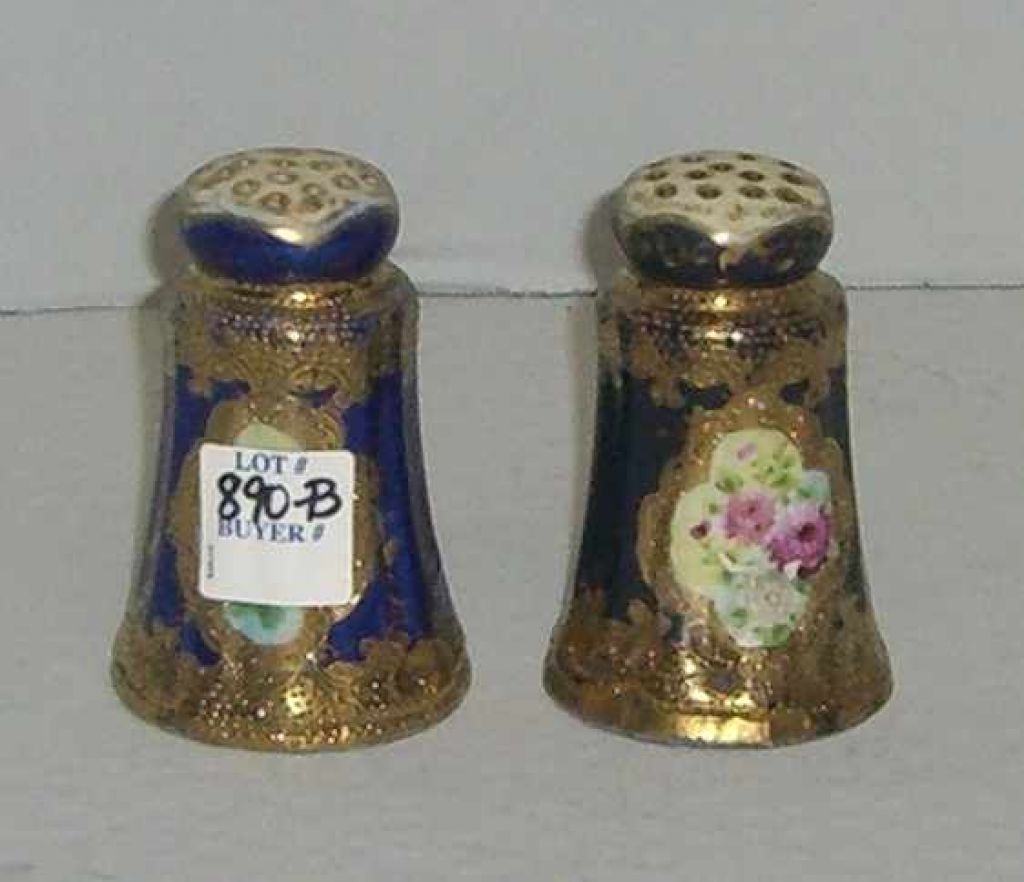 Nippon cobalt with mums salt & pepper shakers. Nippon cobalt with mums salt & pepper shakers.