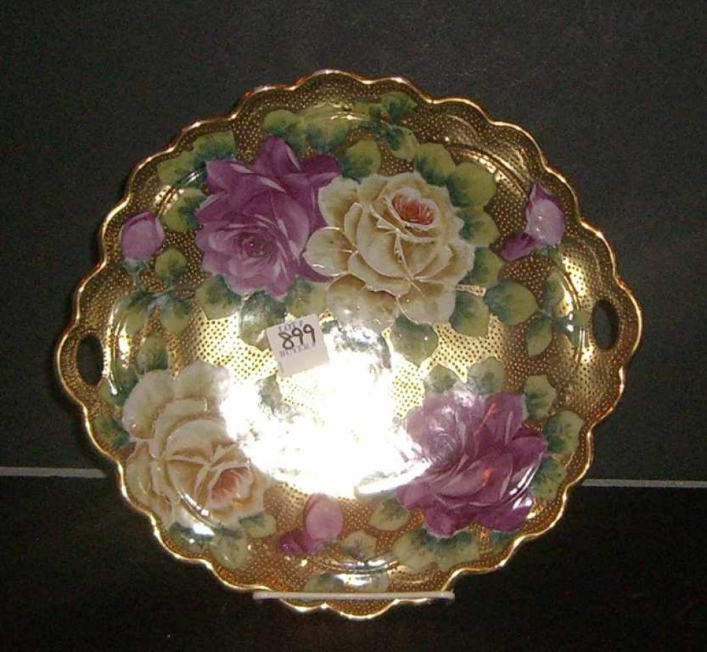 Unmarked Nippon double handle plate gold with flowers - 10 1/2" round Unmarked Nippon double handle plate gold with flowers - 10 1/2" round